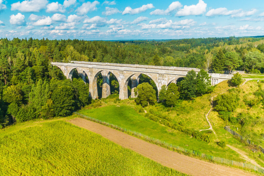 W północno-wschodnim zakątku Warmii i Mazur, pośród lasów i pagórków, stoją konstrukcje, które bardziej przypominają rzymskie akwedukty niż kolejowe wiadukty. Mosty w Stańczykach to jedno z najbardziej spektakularnych miejsc regionu — połączenie inżynierskiej odwagi i niezwykłego krajobrazu.