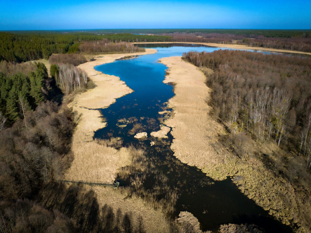 Na początku swojego biegu Łyna nie przypomina rzeki, którą znamy z Olsztyna. Zamiast wartkiego nurtu – cisza, rozlewiska i dzika przyroda budząca się do życia. To właśnie tutaj zaczyna się jedna z najbardziej urokliwych tras w regionie.